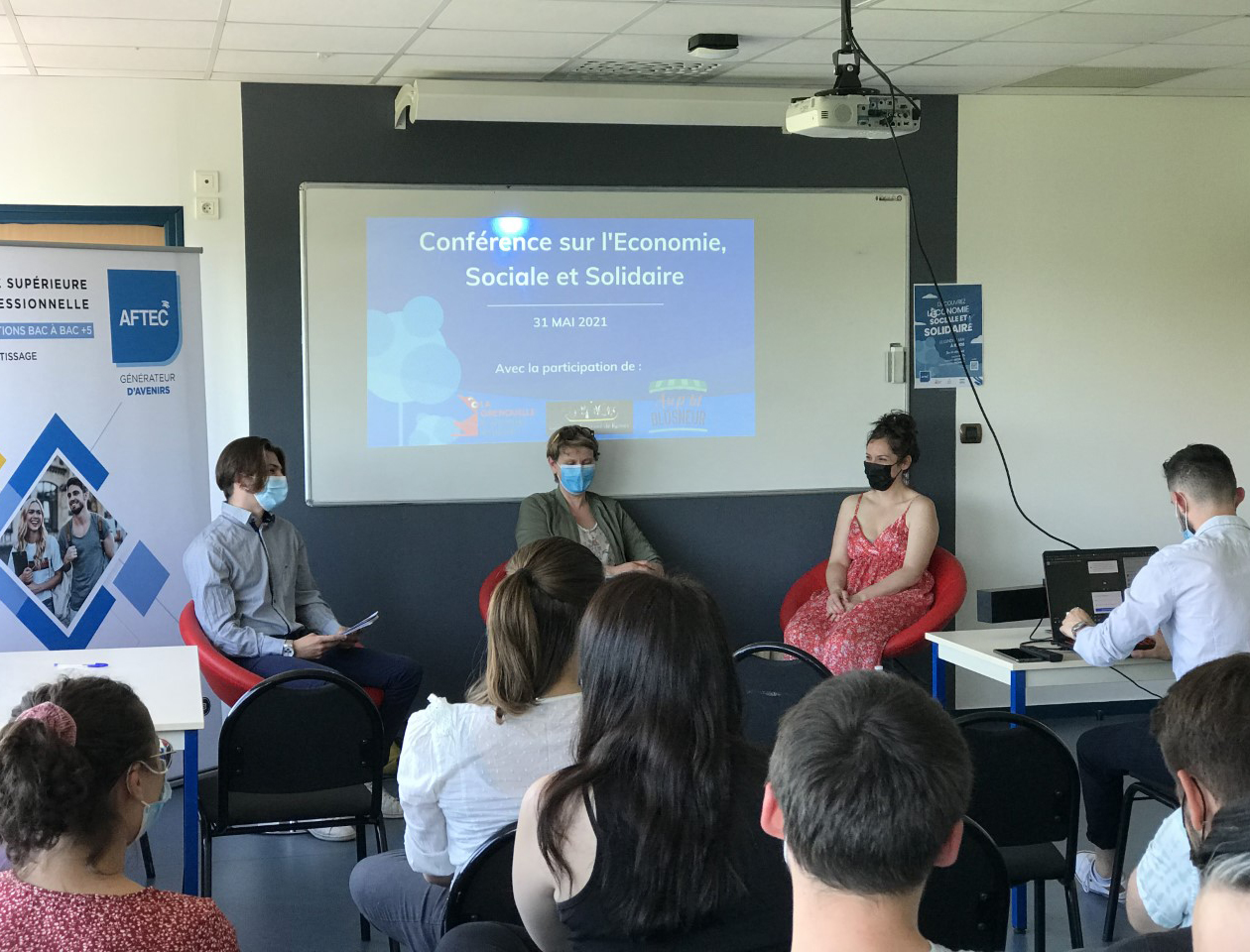 Le 31 mai dernier, une des promotions du BTS Communication à l'AFTEC de Rennes organisait une conférence, simultanément en ligne et dans les locaux de l'école, sur le thème de l’Economie Sociale et Solidaire (ESS). Le but était d’échanger avec des professionnels de ce concept, en vogue dans les collectifs et organisations à but non-lucratifs. Pour ce faire, deux acteurs emblématiques de l’ESS en Bretagne ont été conviés : Isabelle Georges, présidente de la Coopérative Funéraire de Rennes. Elle était accompagnée de Louise Katz, rédactrice en chef de La grenouille à Grande Bouche, une revue gastronomique et un restaurant participatif. Ce collectif a notamment su intégrer la vie rennaise afin de la dynamiser et d’y apporter toutes les valeurs démocratiques, sociales et économiques.